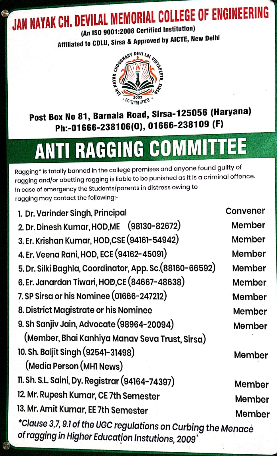 Anti-ragging committee